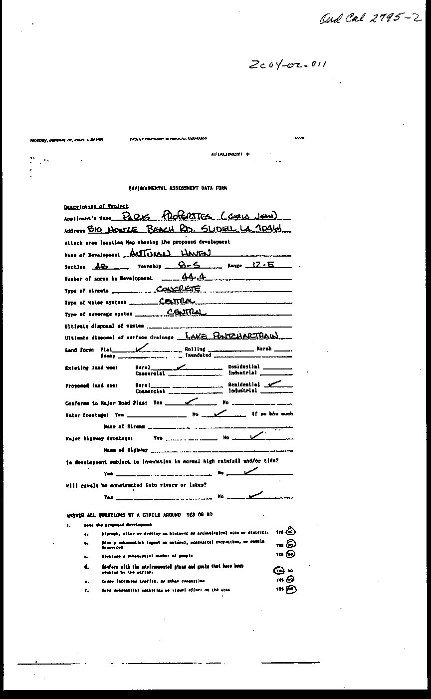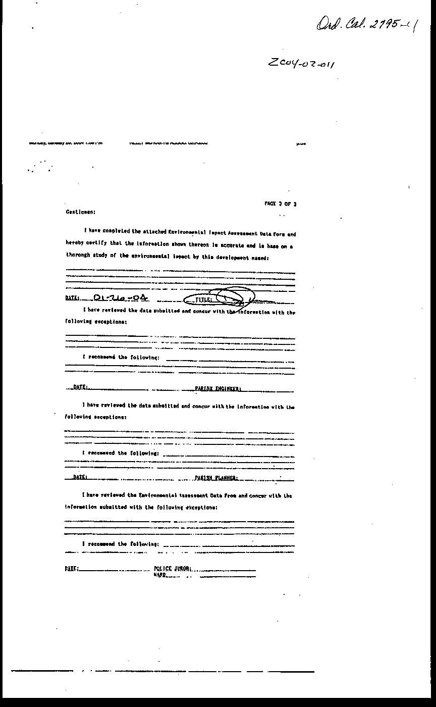 Delivered to Parish President: , 2004 at