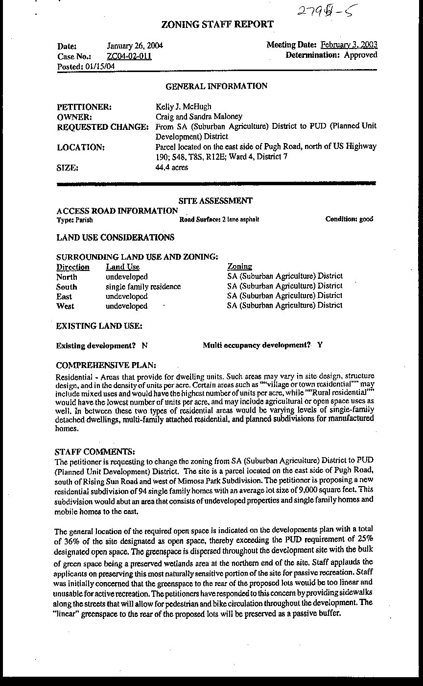 Pugh Road, north of US Highway 190 and which property comprises