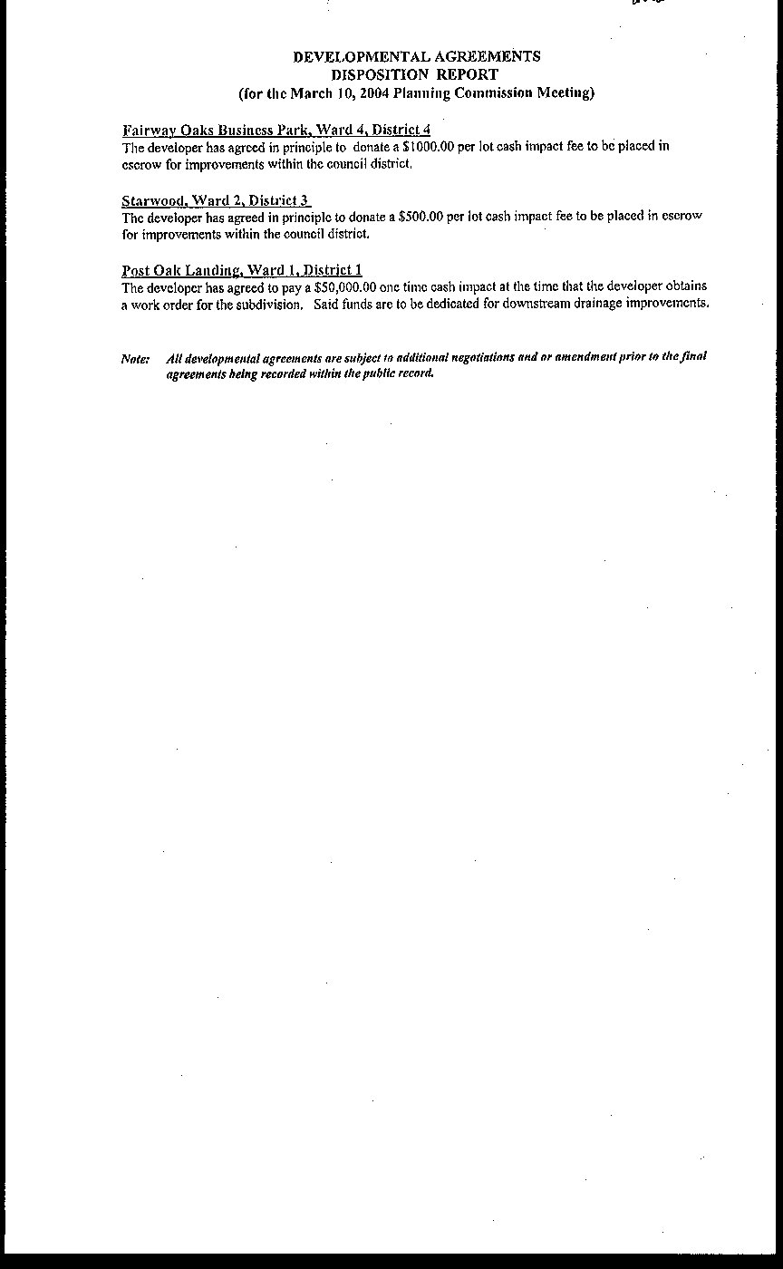 voluntary developmental agreement with the developer of Starwood Subdivision, as well as any other boards,