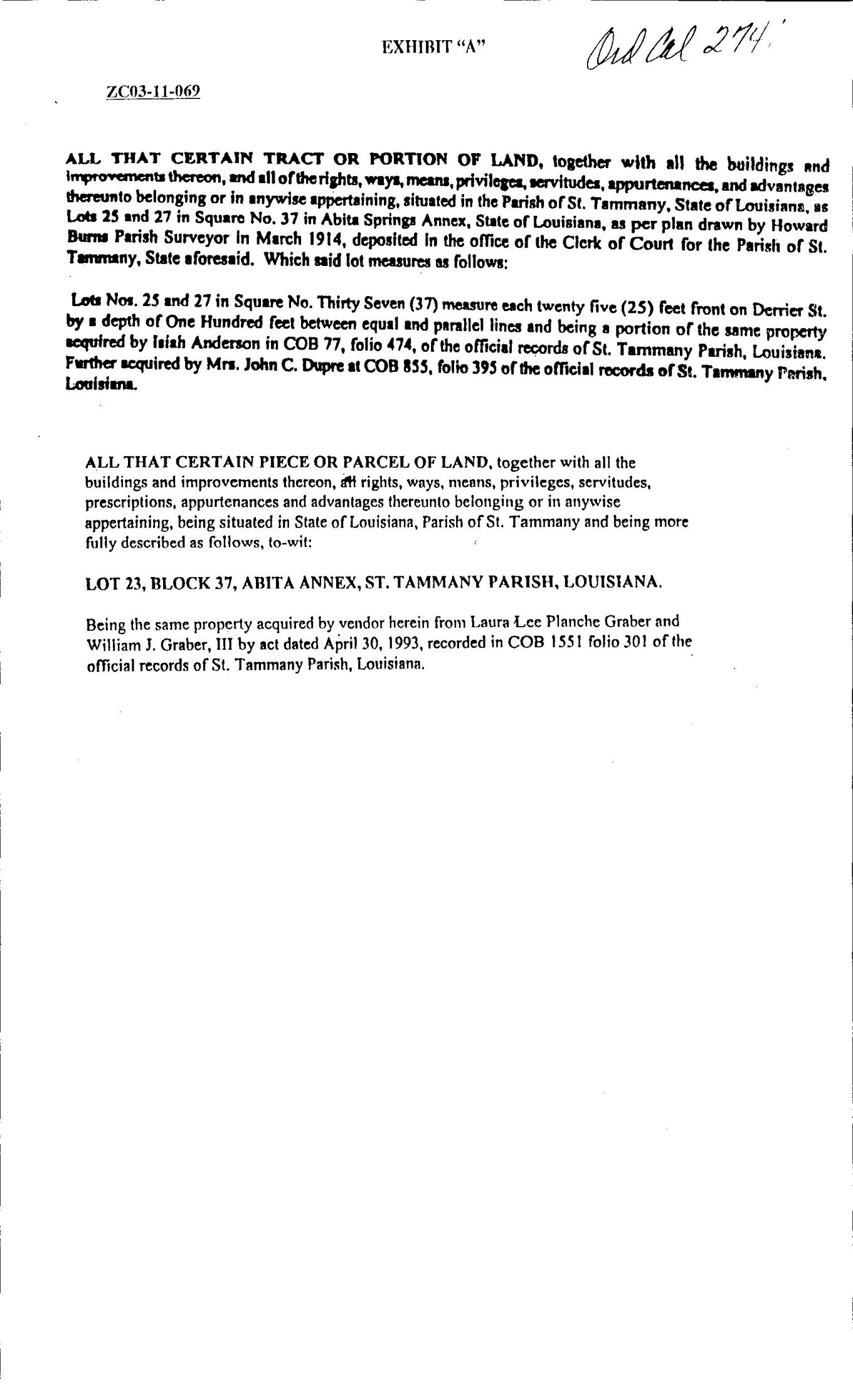 59, north of Crain Street, being lots 23, 25, & 27, in Block 37 of Abita
