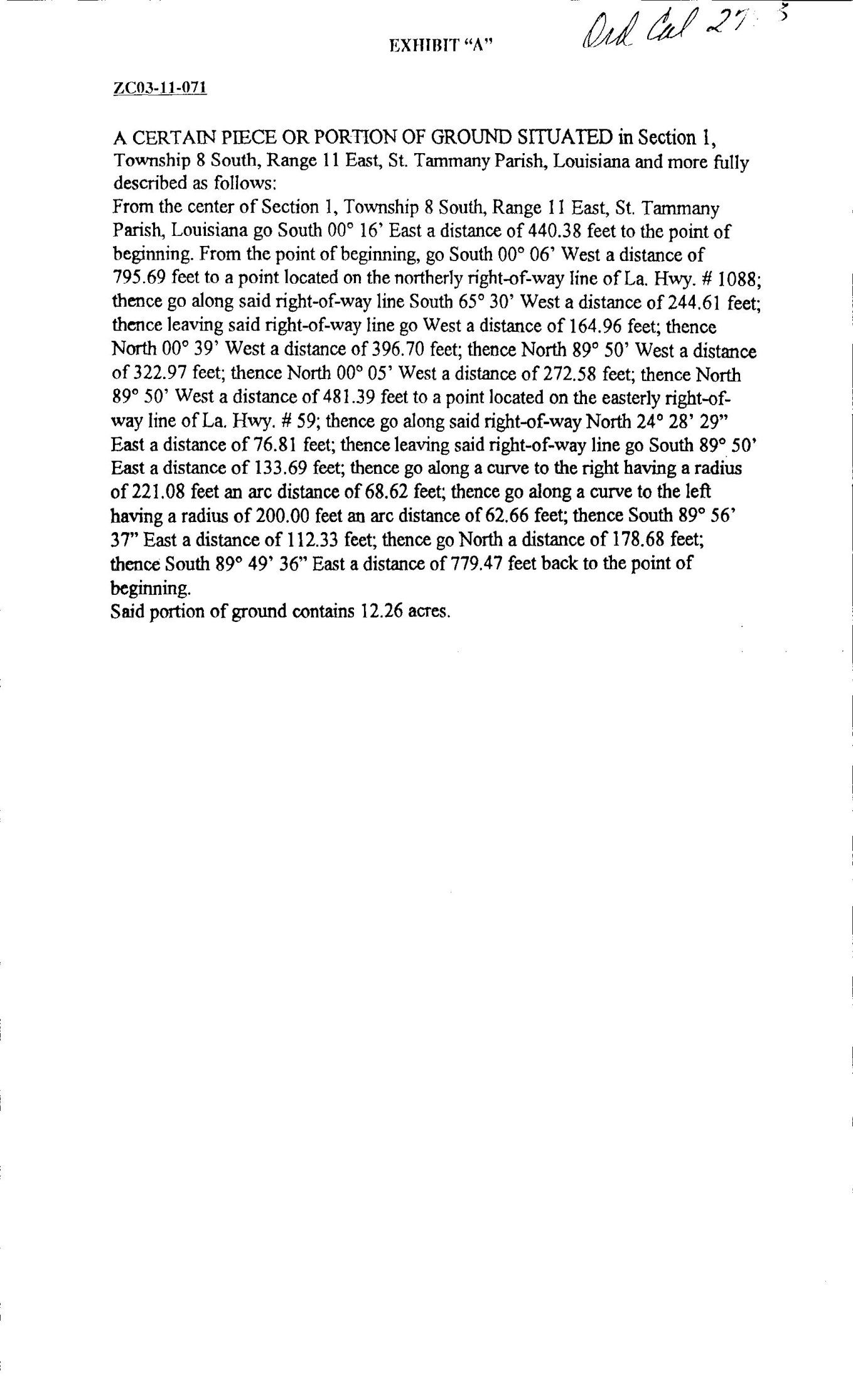 law, Case No. ZC03-11-071, has recommended to the Council of the Parish of St. Tammany, Louisiana,