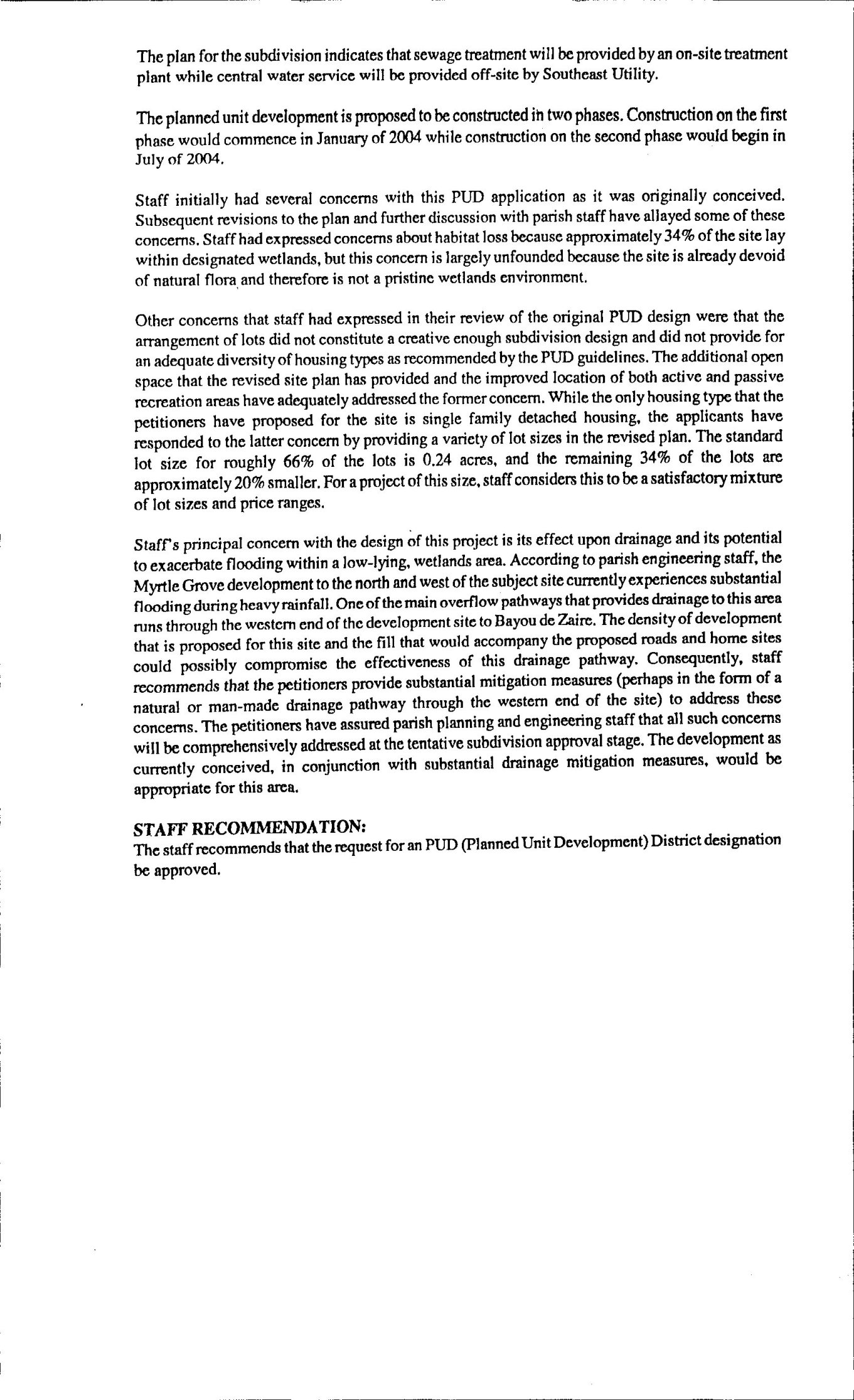 the Parish for drainage improvements in the areas which would be impacted by the proposed PUD.