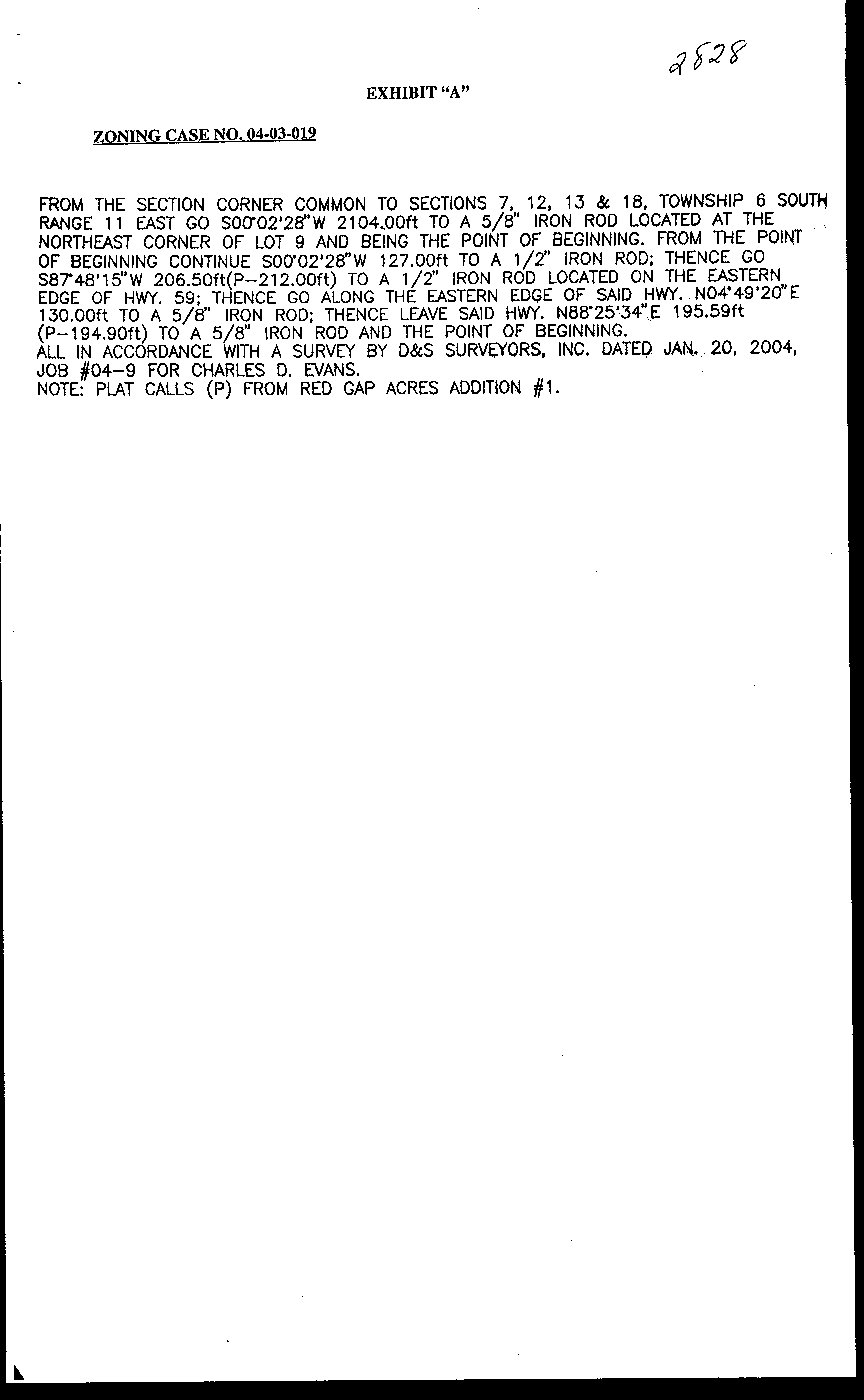 Agriculture) District to a C-2 (Highway Commercial) District (see Exhibit "A") for complete boundaries.