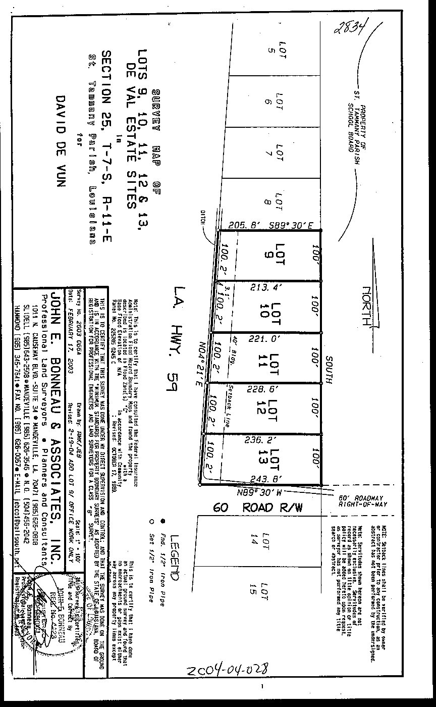 59, south of I-12, being lots 9-13 of De Val Estates Subdivision and which