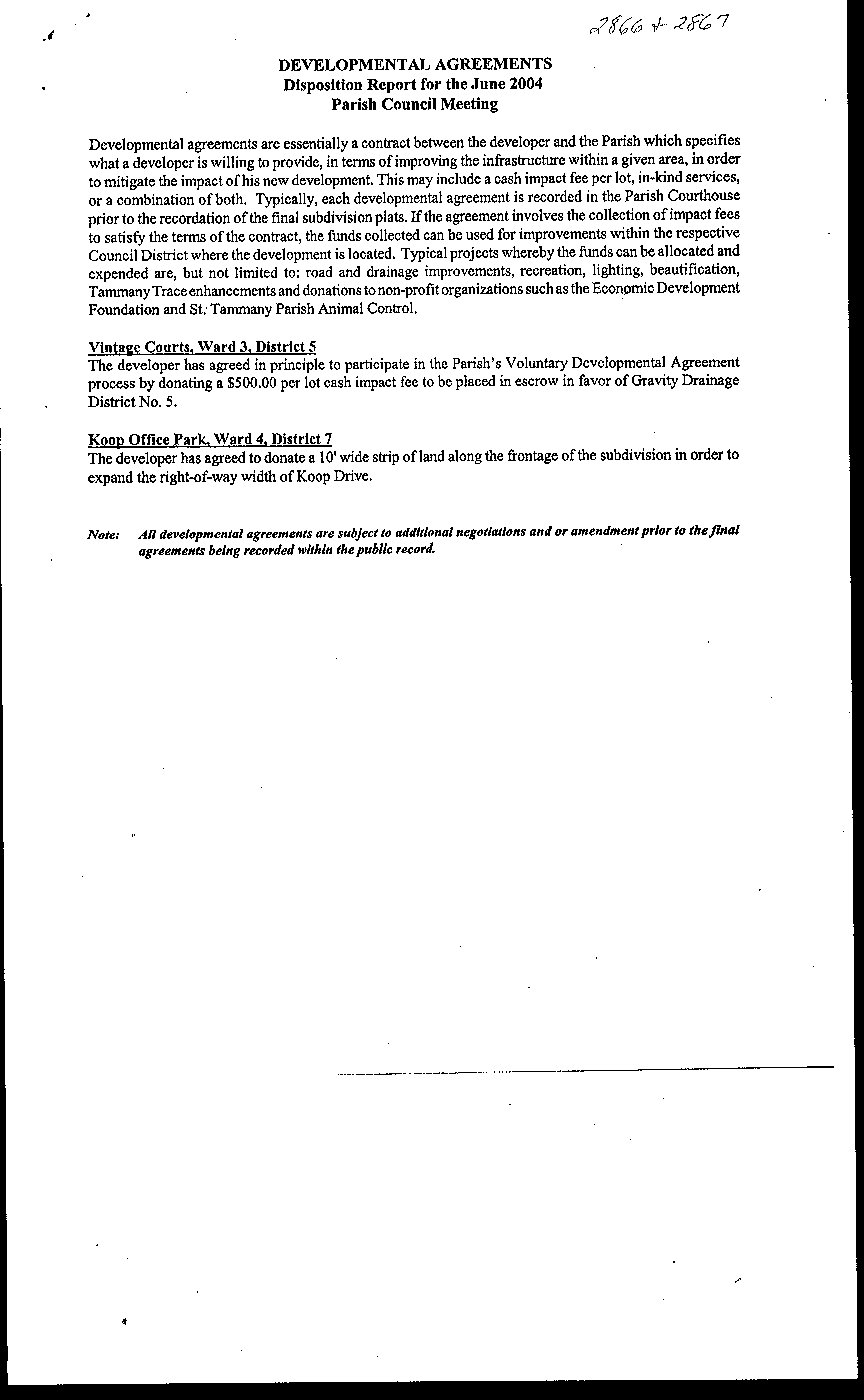 principle to enter into a voluntary developmental agreement with the Parish of St. Tammany; and