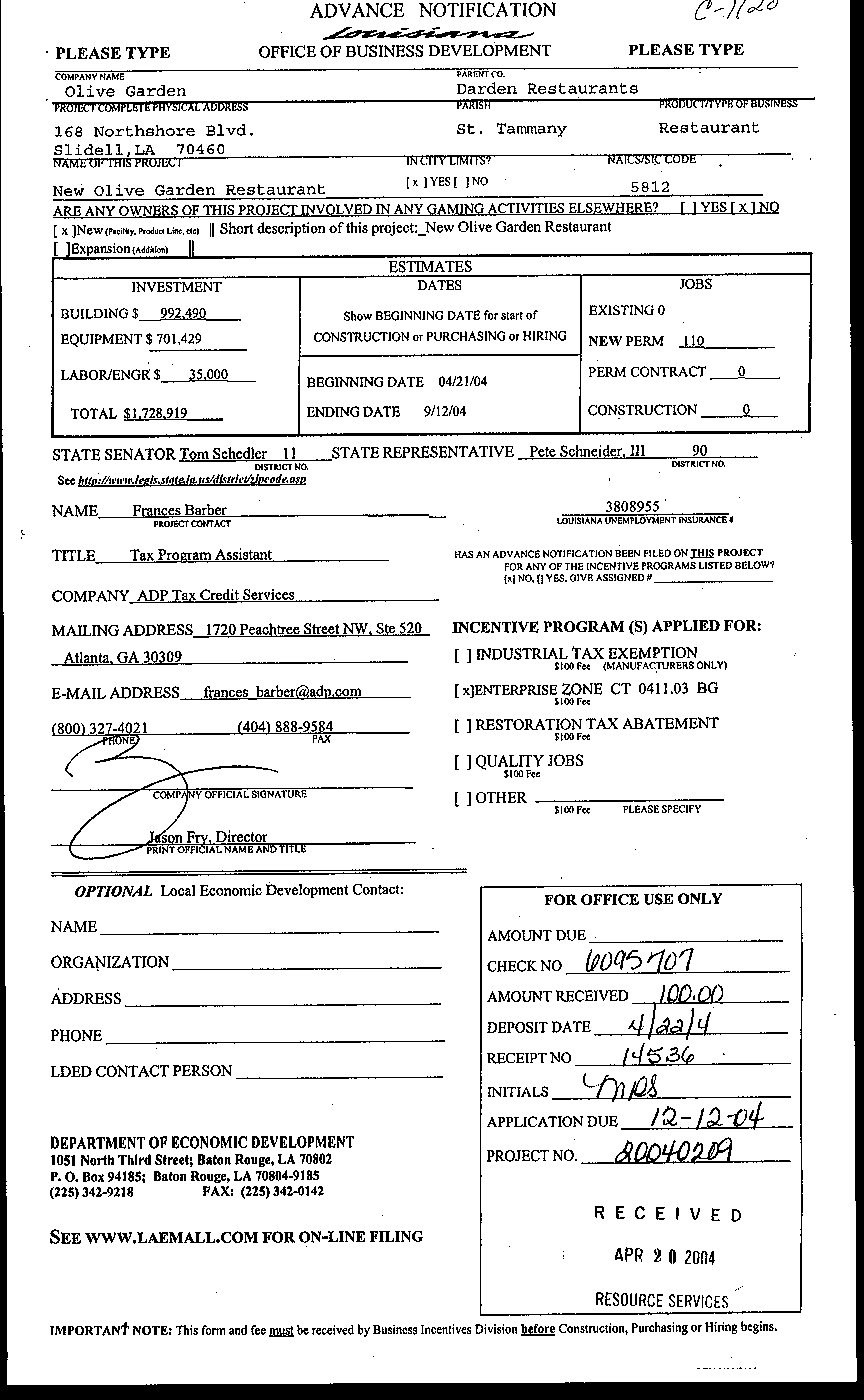 Olive Garden - #EZ20040209 for the following property, located in Council District 11 of St.