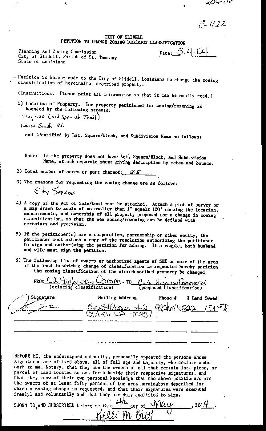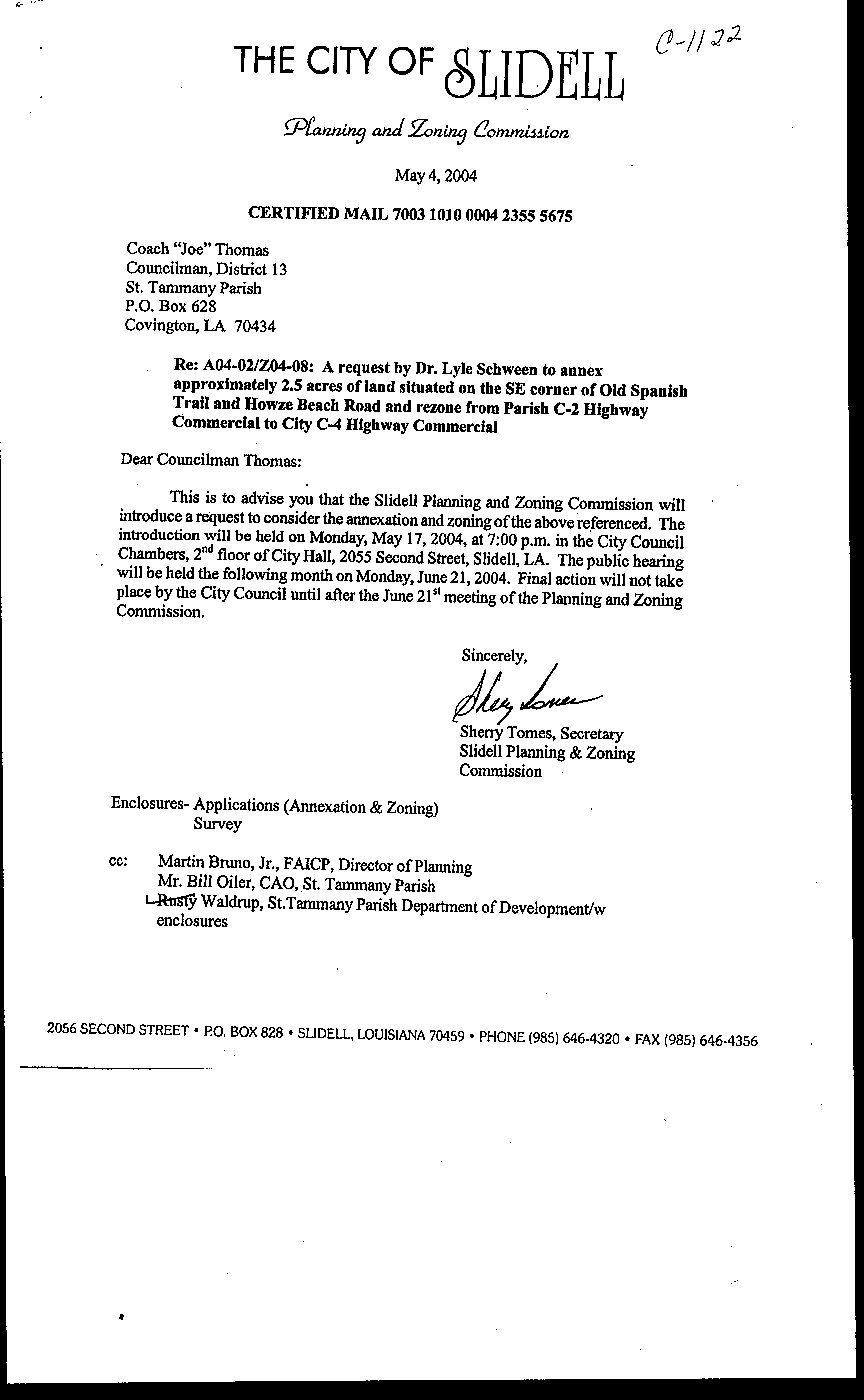 Commercial/SA Suburban Agriculture District to City of Slidell C-4 Highway Commercial District in