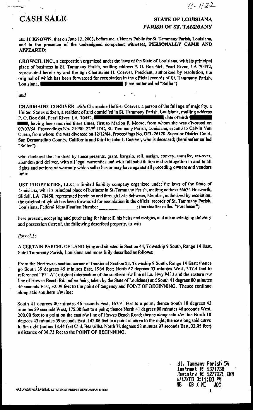 Spanish Trail being 1819 Old Spanish Trail, part of S44, T9S, R14E, Ward 9, District 12 (see attachments for