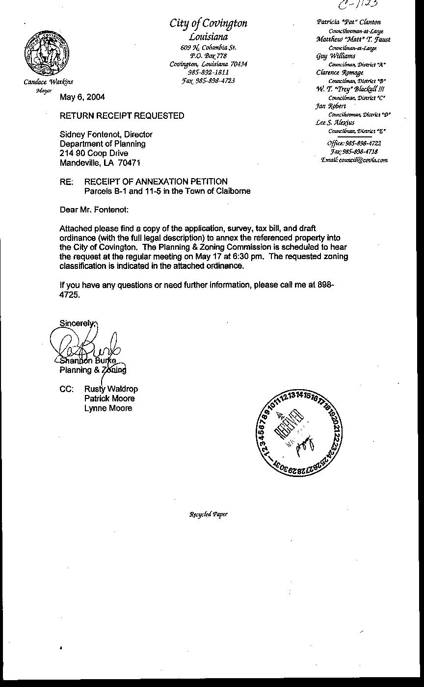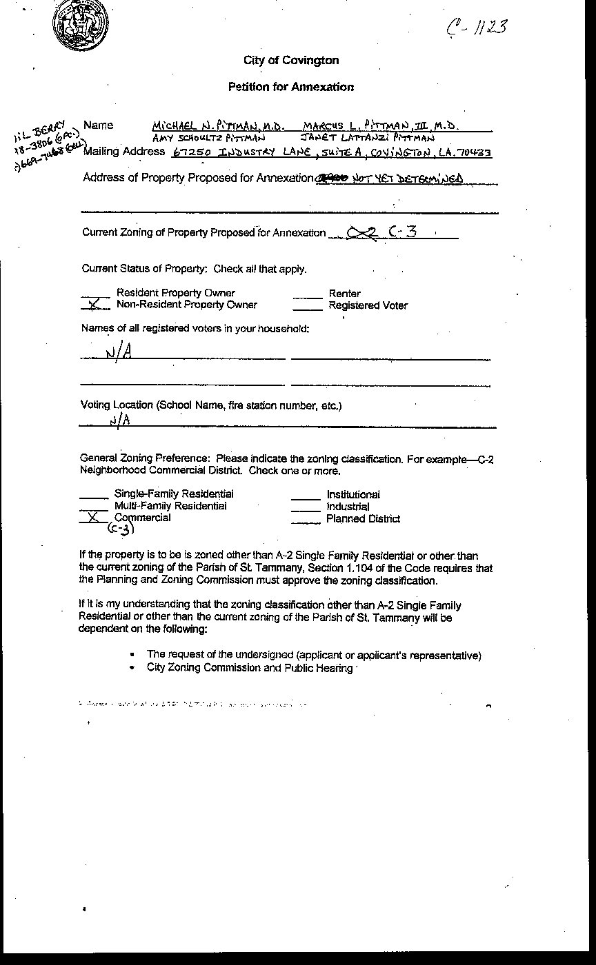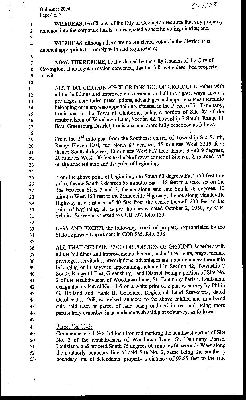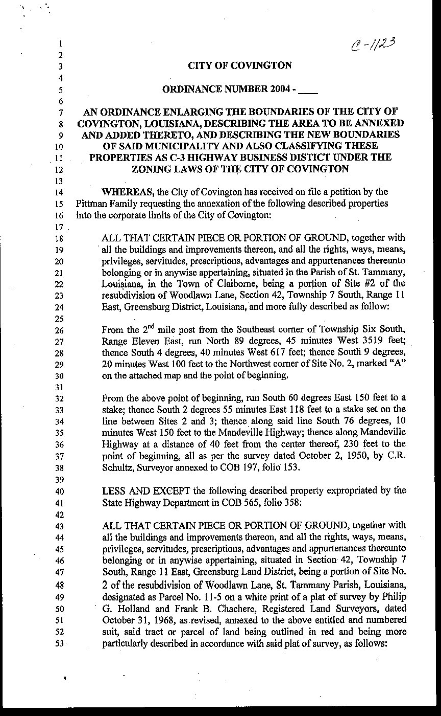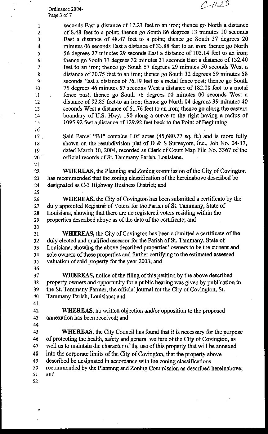of Covington to annex and rezone 1.15 acres of land more or less, located in District 3 from Parish C-2