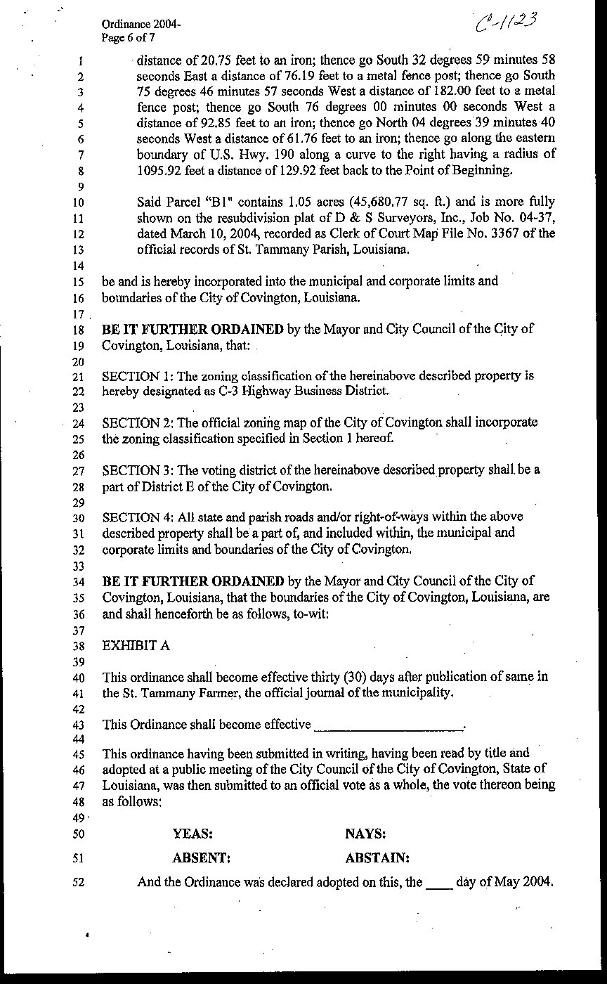 Highway Commercial District to City of Covington C-3 Highway Business District in accordance with