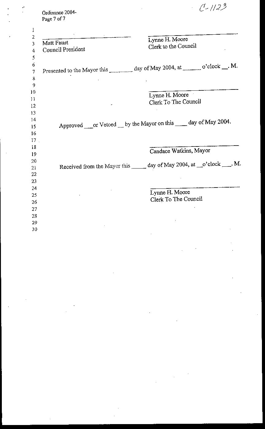 THIS RESOLUTION WAS DECLARED ADOPTED ON THE DAY OF , 2004,