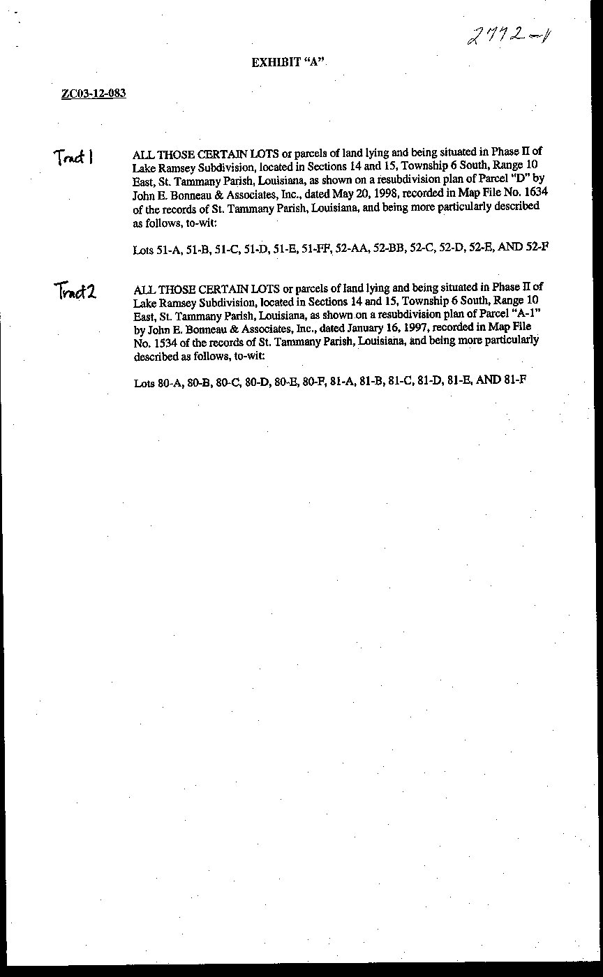 Subdivision, Phase 2; and being lots 51A through 51FF and lots 52AA