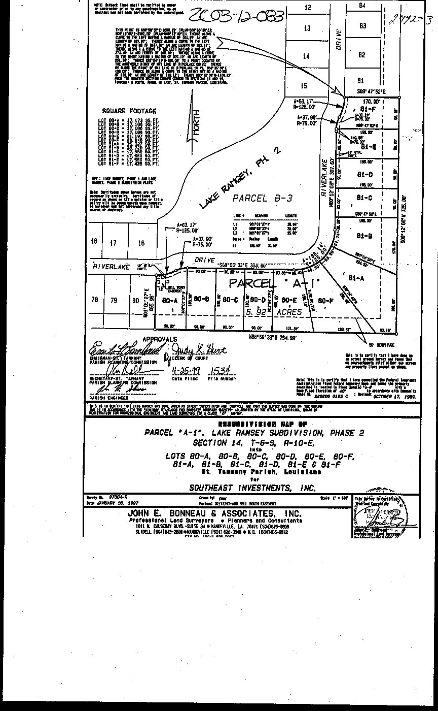 81A through 81F and lots 80A through 80F of Parcel A-1 of Lake Ramsey