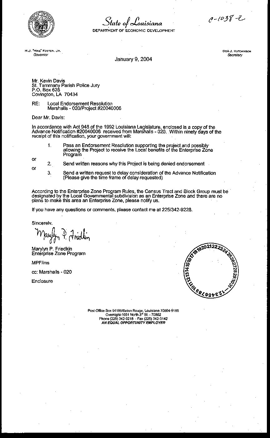 WHEREAS, in accordance with the Louisiana Enterprise Zone Program requirements the St. Tammany Parish