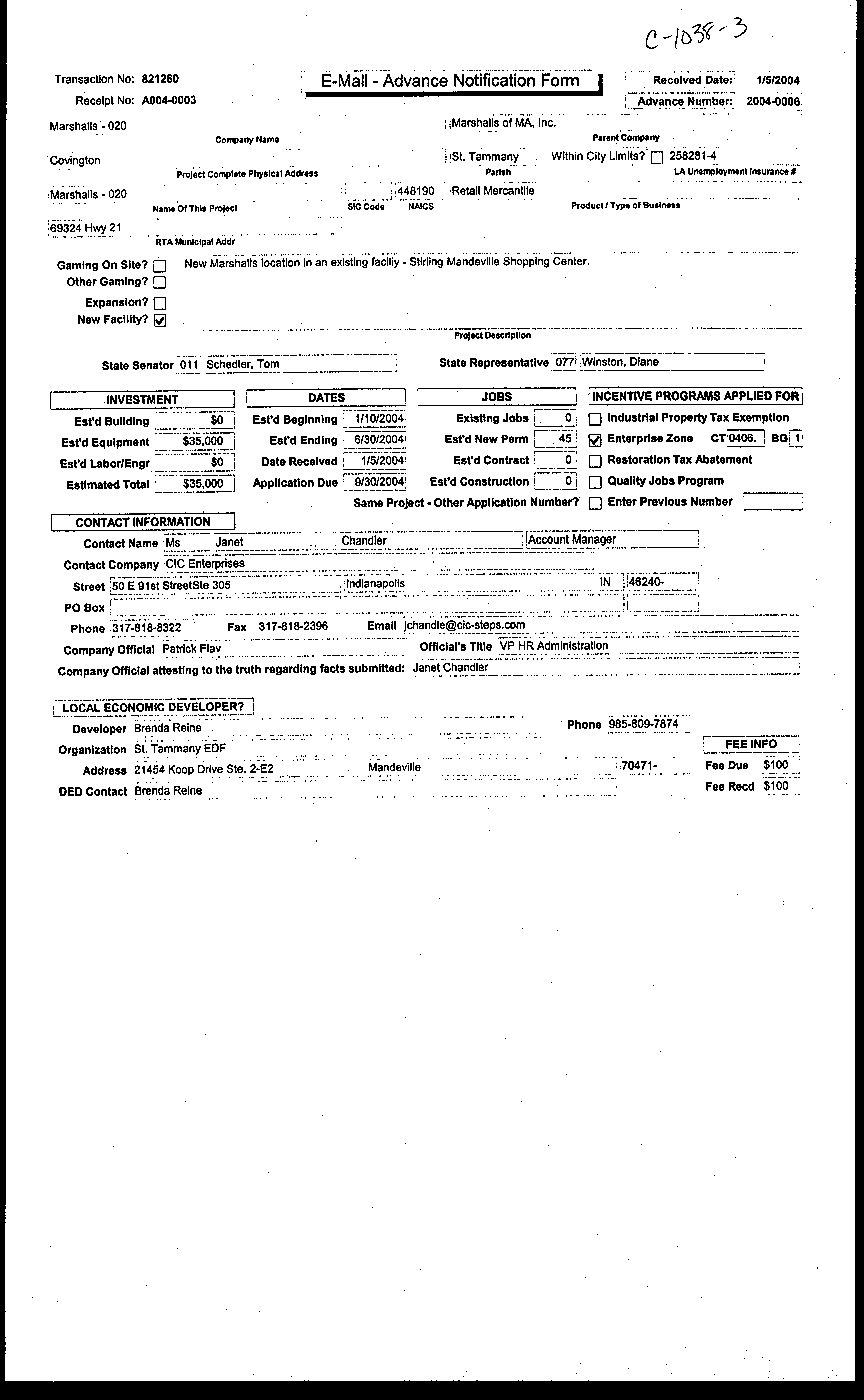 Marshall's-020 - #EZ20040006 for the following property, located in Council District 1 of St.