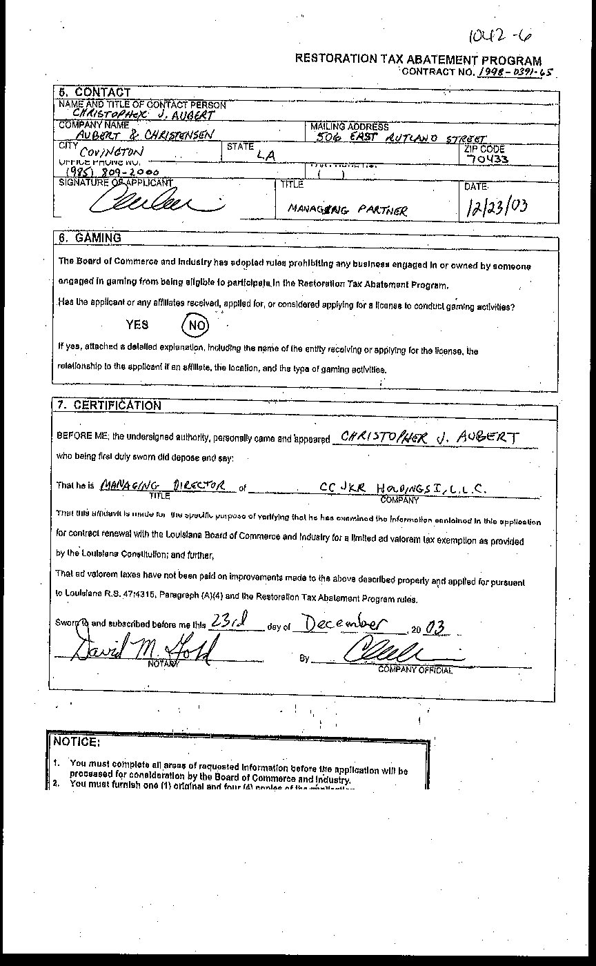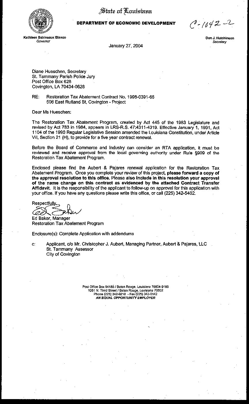 TAX ABATEMENT CONTRACT BETWEEN THE LA DEPARTMENT OF