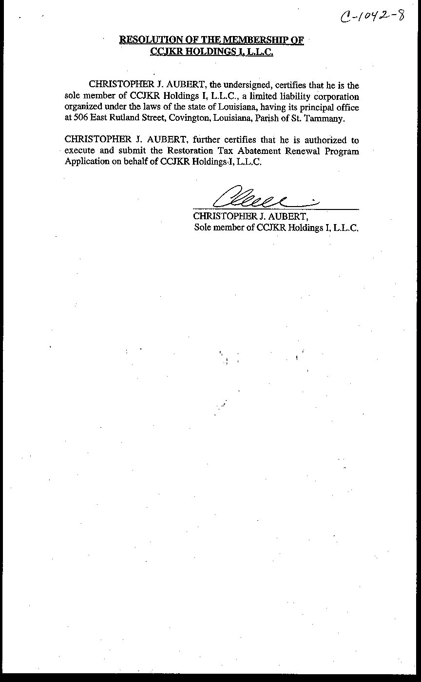 described as municipal address 506 E. Rutland Street, Covington, Louisiana, 70433, owned by CCJKR Holdings