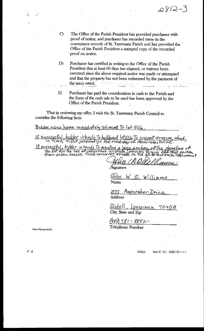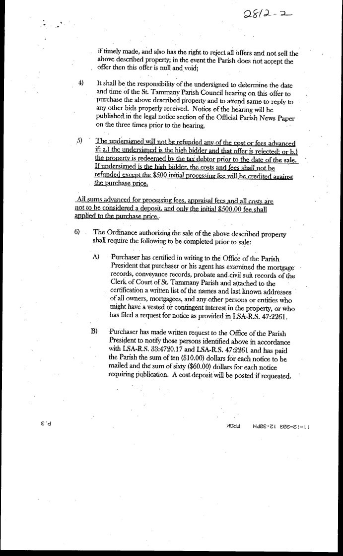 F) Purchaser had deposited with the Parish of St. Tammany the amount required to be