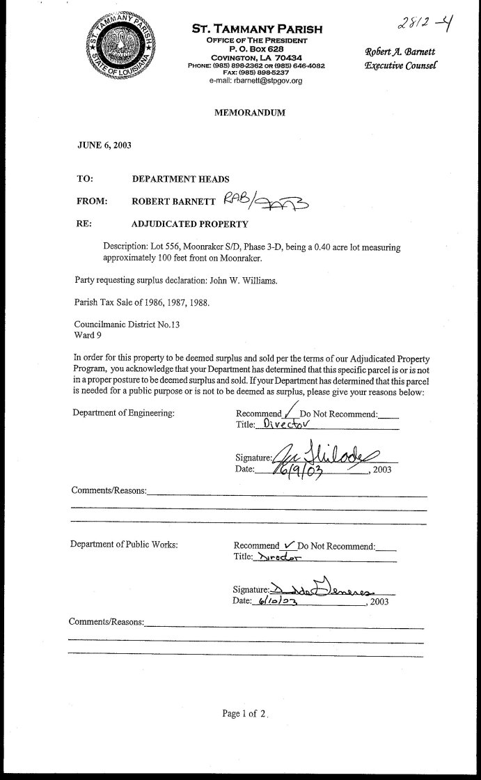 THE PARISH OF ST. TAMMANY HEREBY ORDAINS that the Parish Council declares Lot 556,