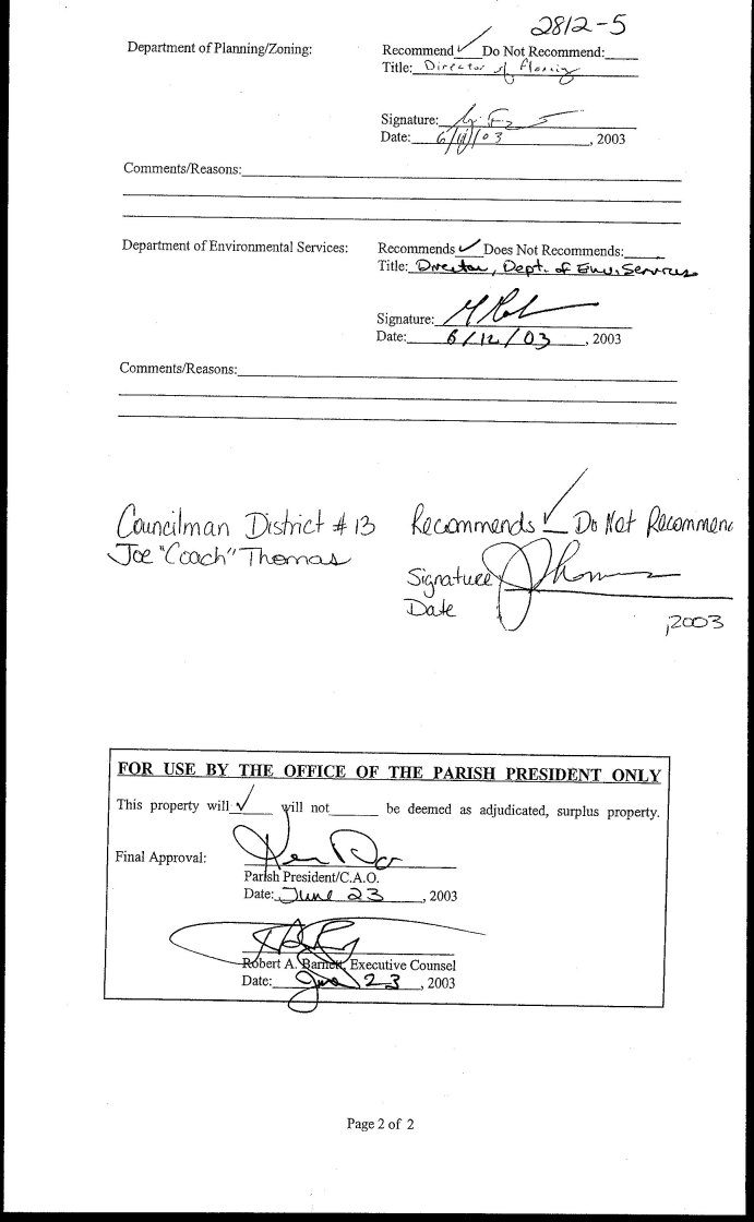 WHEREAS, no written opposition or higher offer has been filed with the Office of the Parish