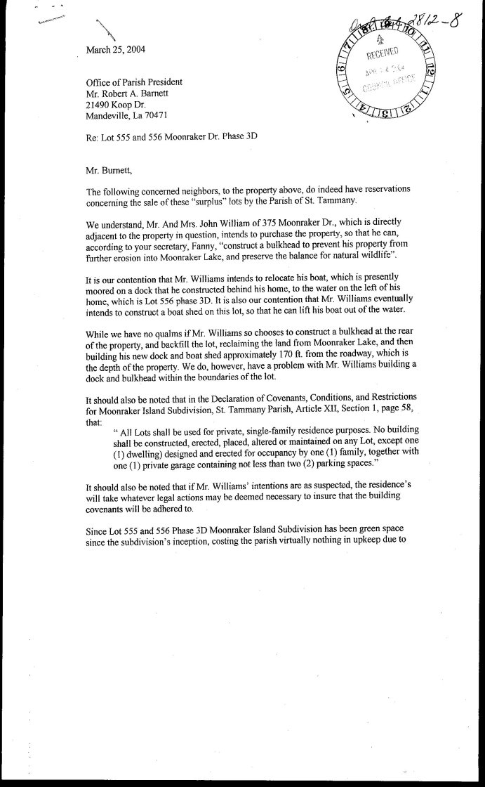Section 1. Lot 556, Moonraker Subdivision, Phase 3-D, Slidell, Louisiana, are hereby declared