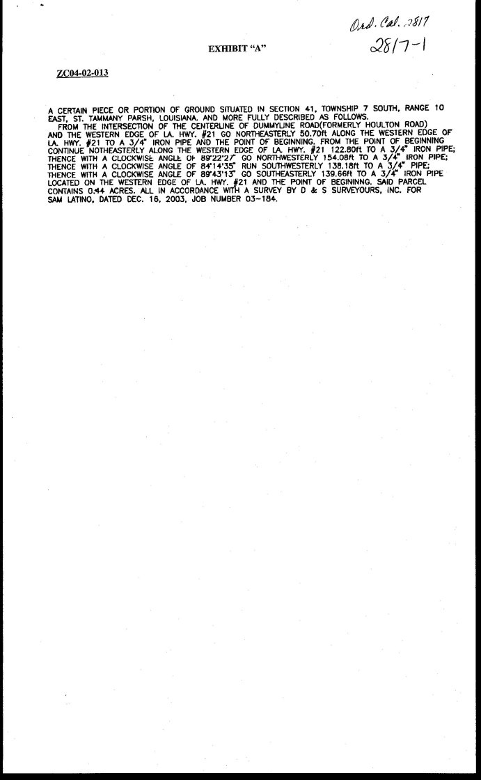 law, Case No. ZC04-02-013, has recommended denial to the Council of the Parish of St. Tammany,
