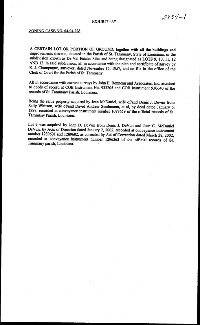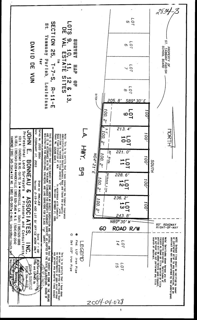59, south of I-12, being lots 9-13 of De Val Estates Subdivision and which