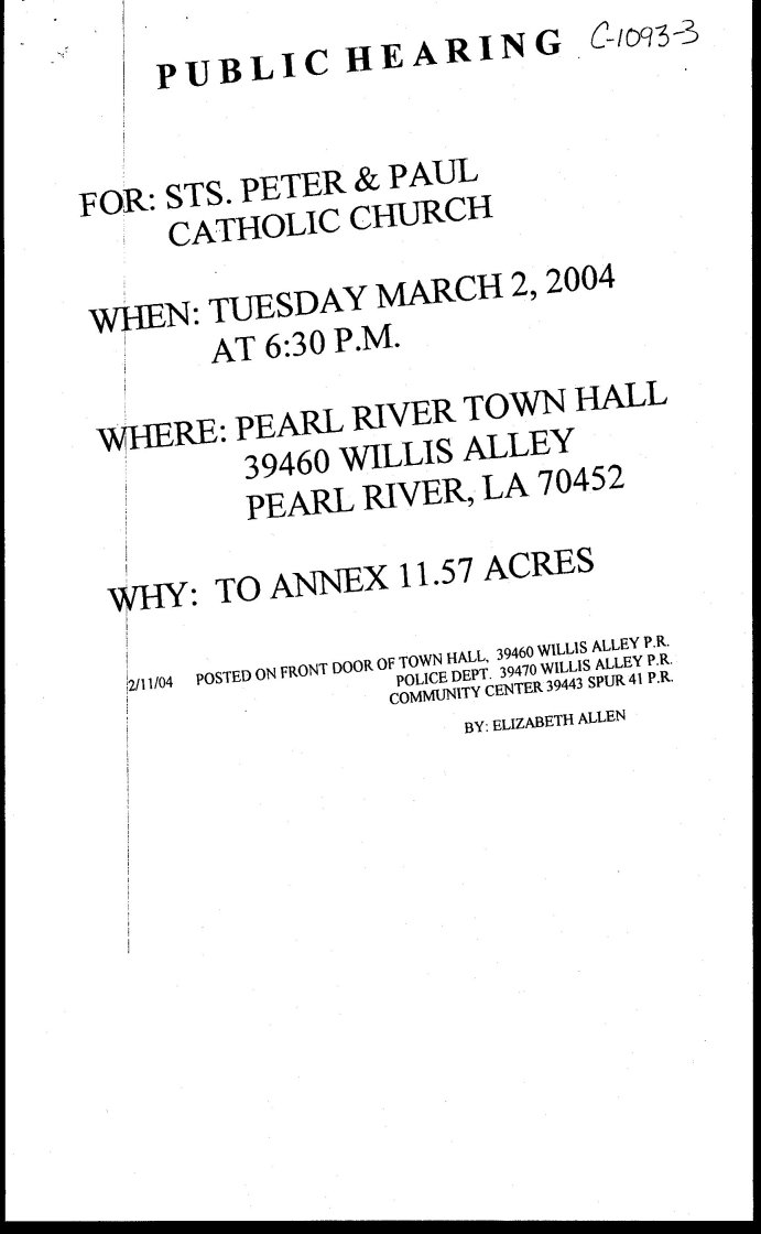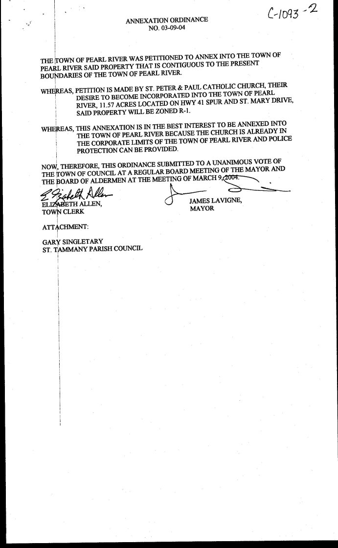 of Pearl River to annex and rezone 11.57 acres of land more or less, located in District 6 from Parish Rural