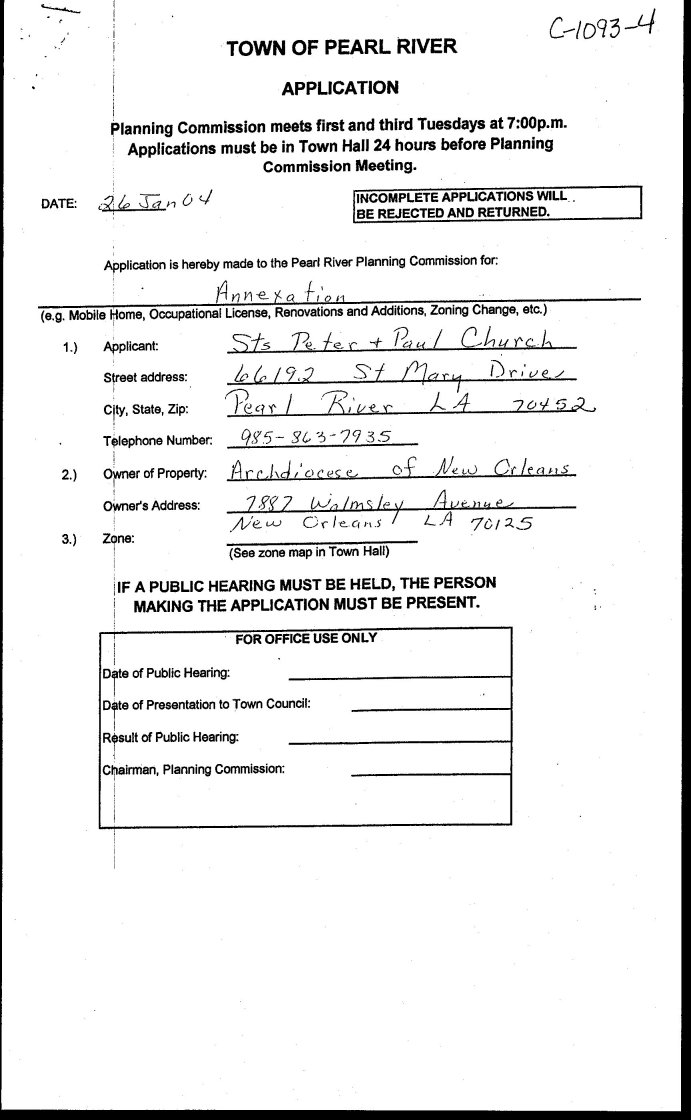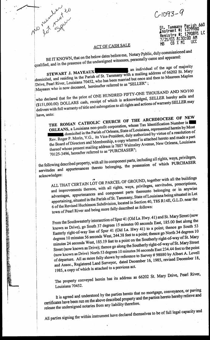 owned by Archdiocese of New Orleans, located at Sts. Peter & Paul Catholic Church being 66192 St. Mary
