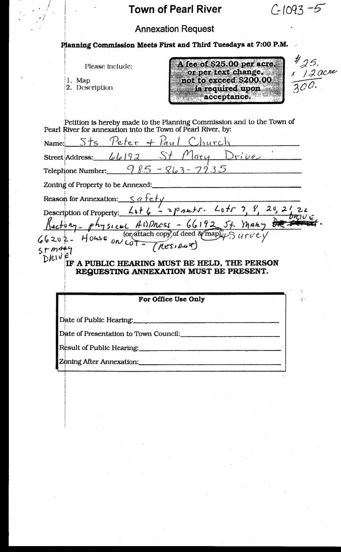 of Pearl River R-1 District which property is located at Sts. Peter & Paul