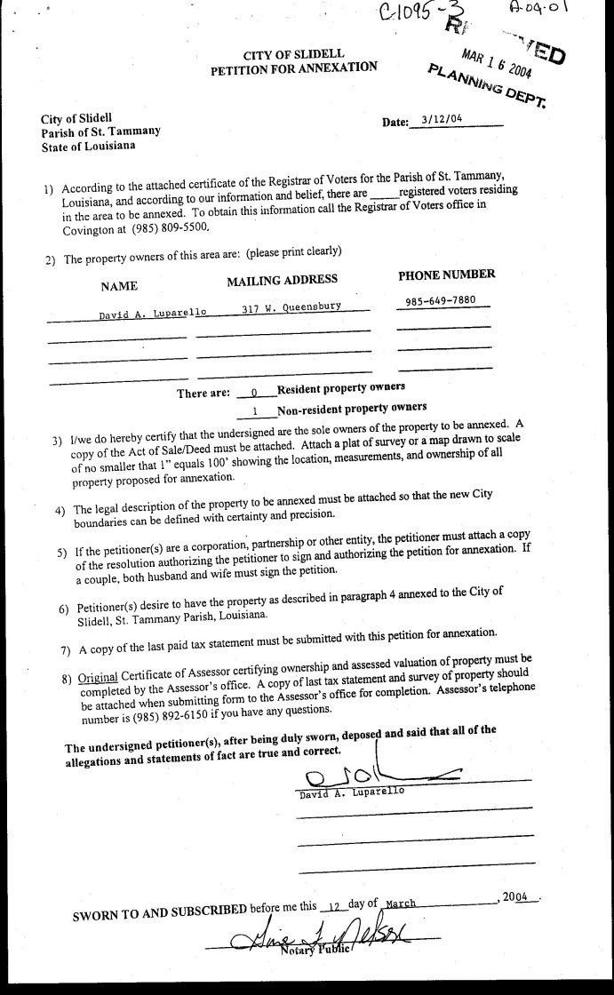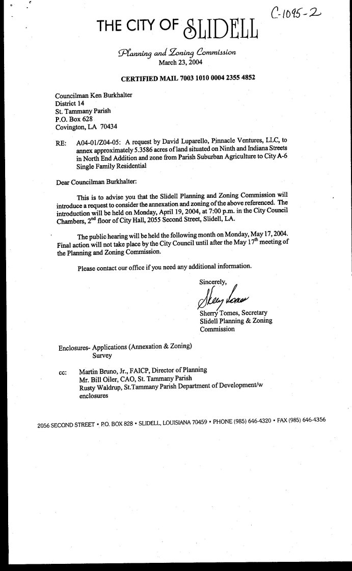 of Slidell to annex and rezone 5.36 acres of land more or less, located in District 14 from Parish SA Suburban