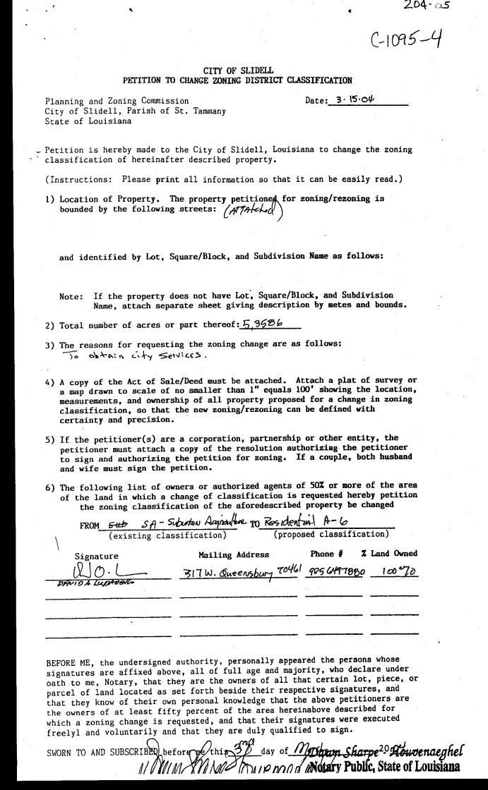 Slidell A-6 Single Family Residential District which is not an intensification of zoning, and