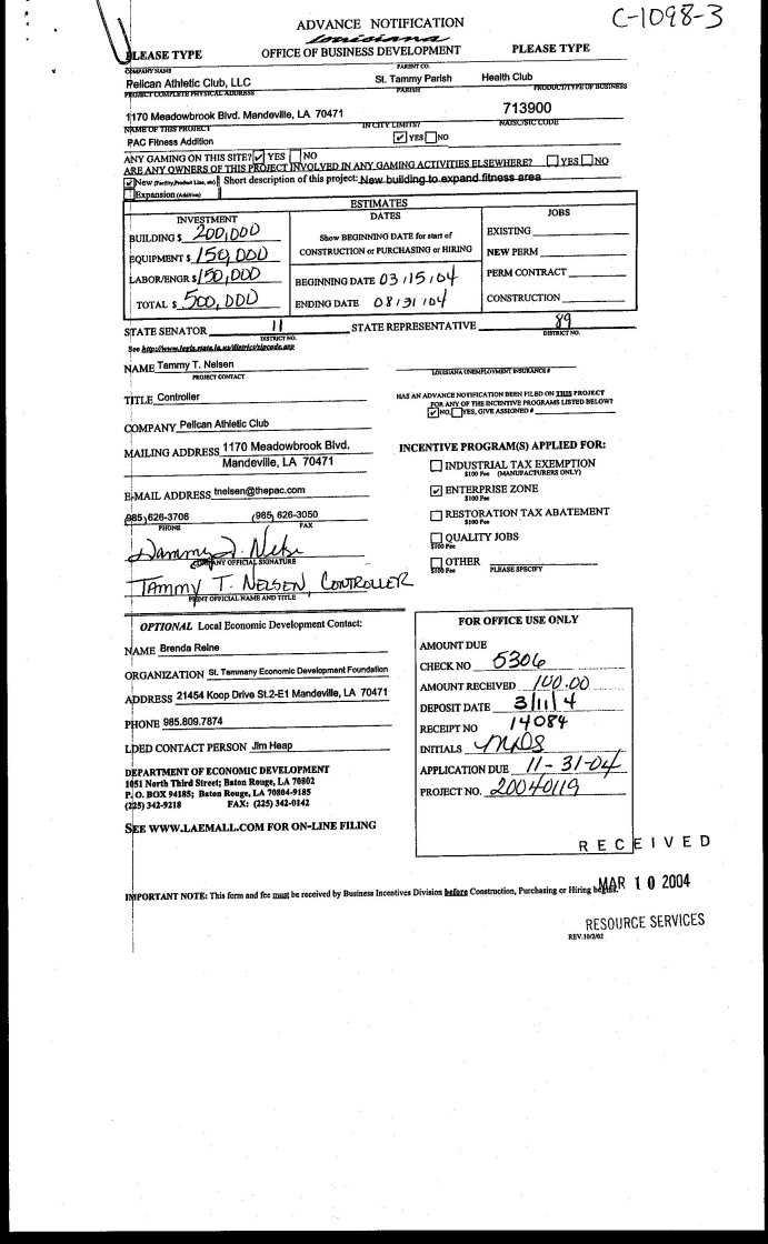 Pelican Athletic Club, LLC - #EZ20040119 for the following property, located in Council District 5 of